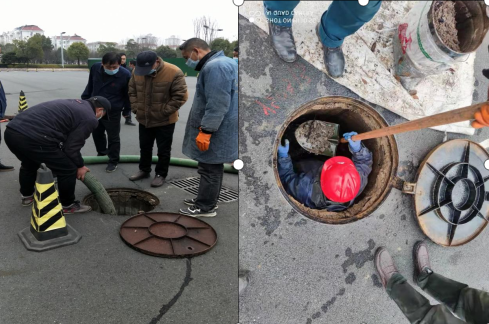 二是做好安全防護,確保疏通成效。施工期間,是信陽地區(qū)最為寒冷時期,參加疏通施工人員,發(fā)揮“申飛人”不畏困難的精神,在嚴寒天氣做好保溫、防護設施,下到檢查井、管道內(nèi),一點一點清運淤泥,保證清淤疏通效果。